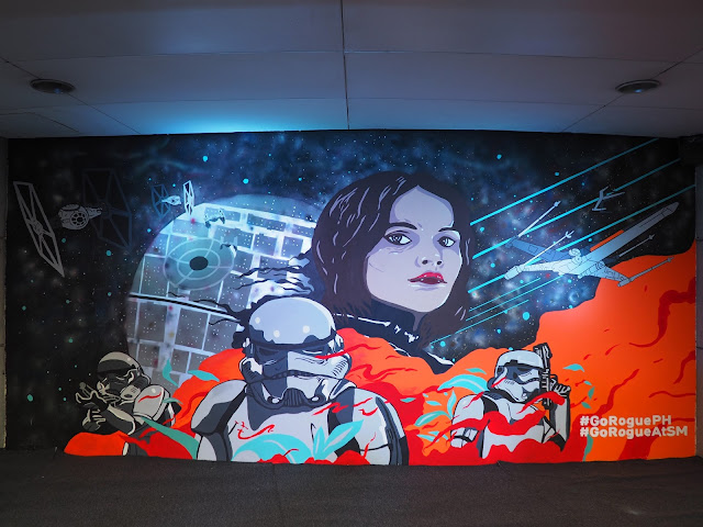 Last Saturday, I got the chance to personally witness the unveiling of the art mural for the #GoRoguePH launch at the SM North Edsa Skydome. The mural depicts the main character for the upcoming film Jyn Erso played by Felicity Jones. It also features The Death Star and storm troopers who plays a vital role in the film.