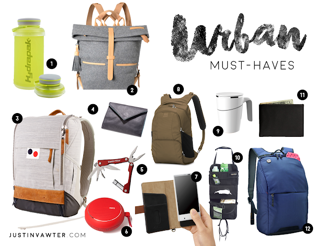 1. Hydrapak Stash 1L2. Sherpani Amelia Chai3. Pingpong Backpack4. Allett Women’s Original Slim Wallet5. Swisstech Multi Tool6. Mifa Speakers7. Elecom Universal Phone Case8. Pacsafe Metrosafe9. Artiart Suction Mug10. High Road Back Seat Organizer11. Kiko Wallet12. Focused Space Ivy League Navy